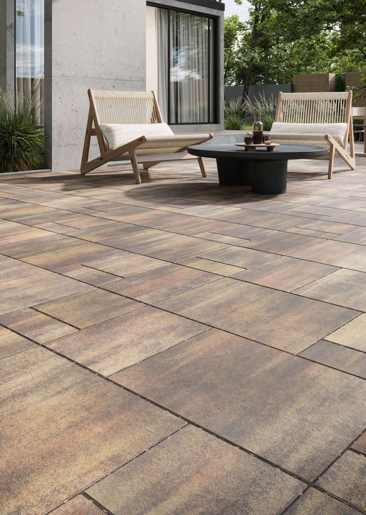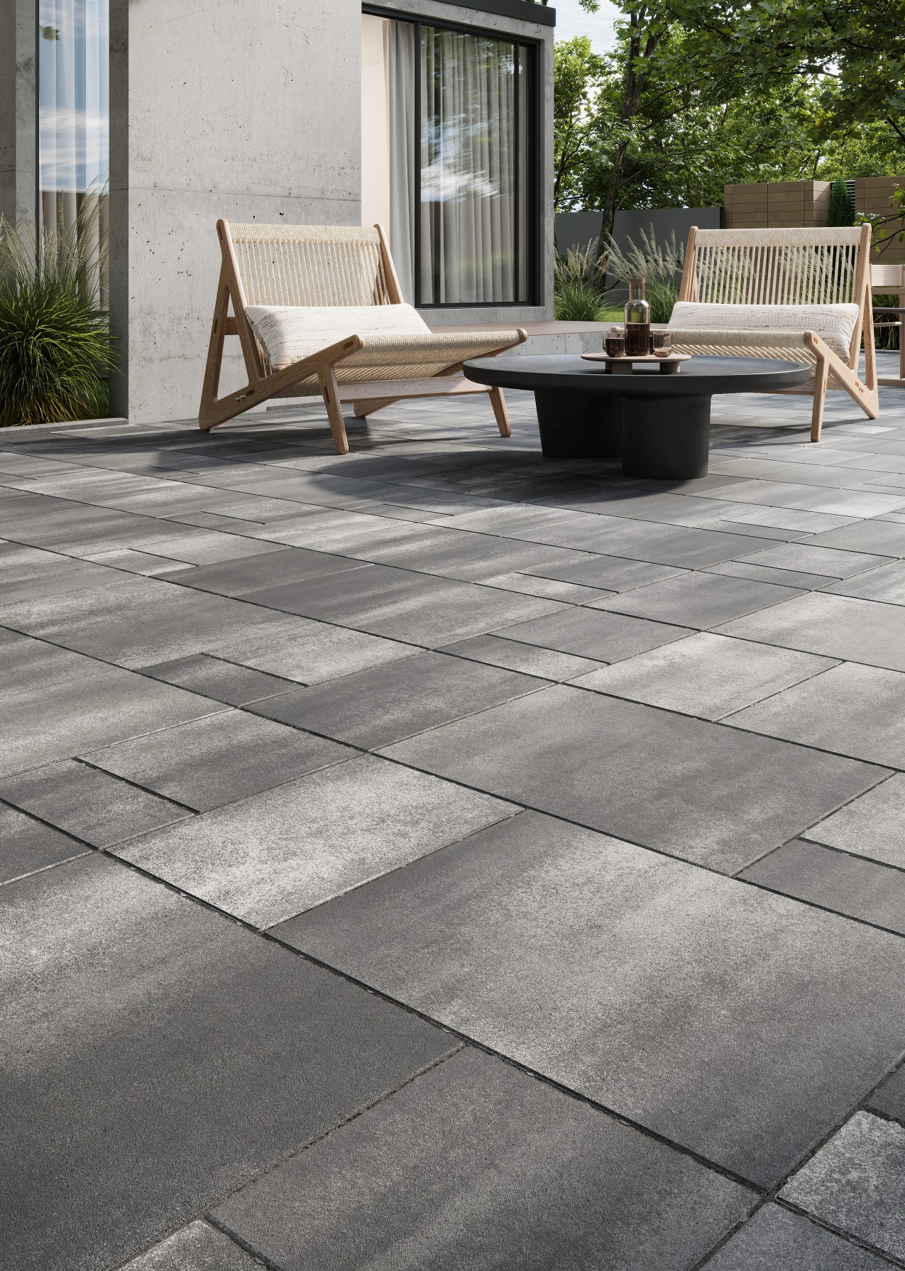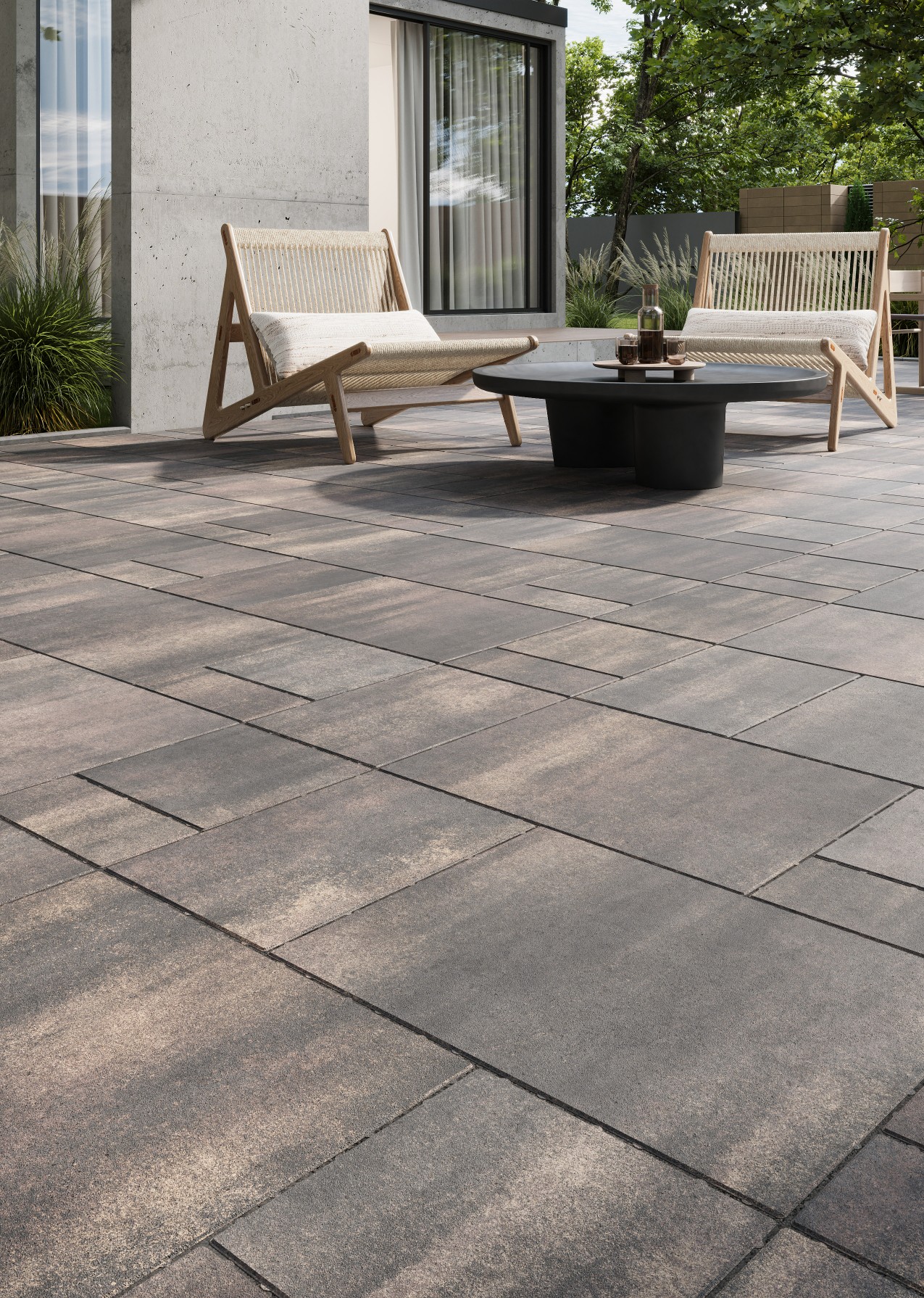 “Патіо” – це елегантна бетонна плитка, що поєднує в собі естетику і функціональність. Завдяки гладкій поверхні, вона ідеально підходить для облаштування терас, дворів, садових зон та інших місць відпочинку.
