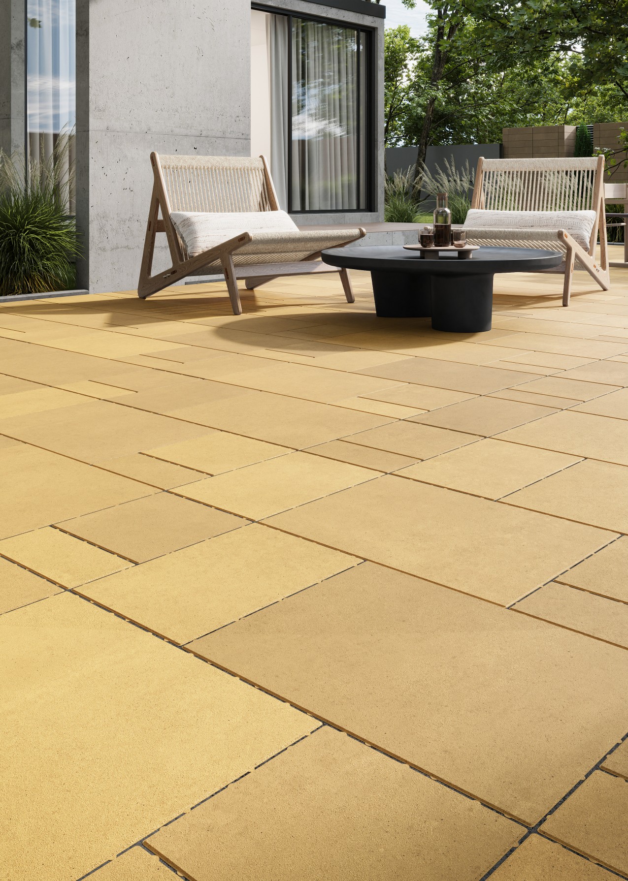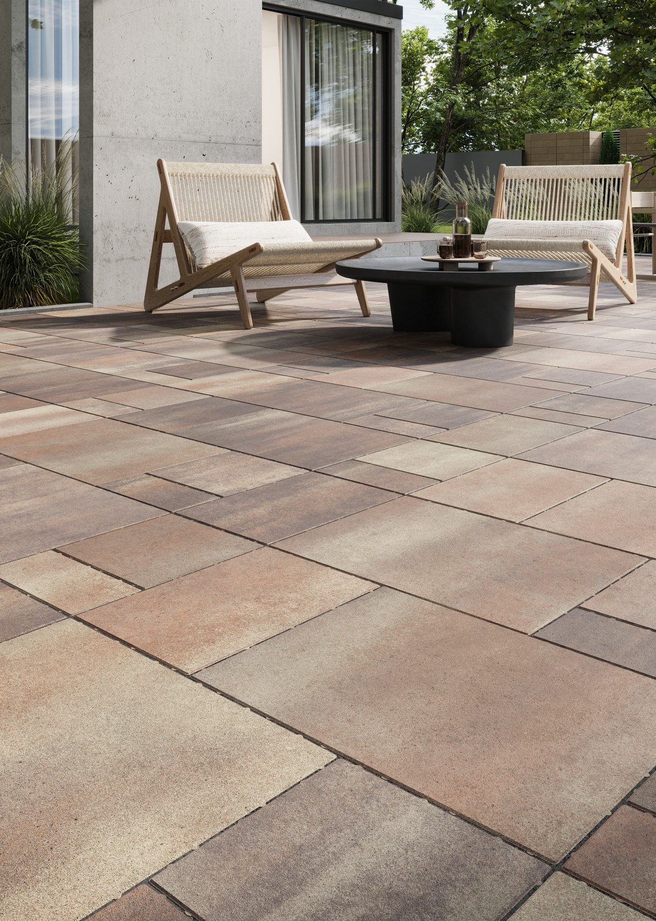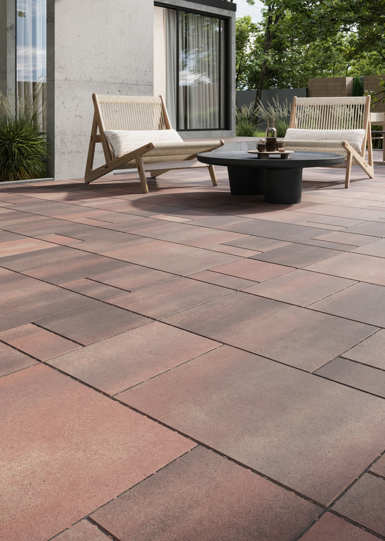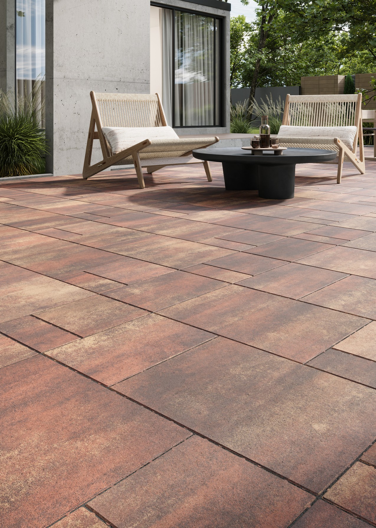 “Патіо” – це елегантна бетонна плитка, що поєднує в собі естетику і функціональність. Завдяки гладкій поверхні, вона ідеально підходить для облаштування терас, дворів, садових зон та інших місць відпочинку.