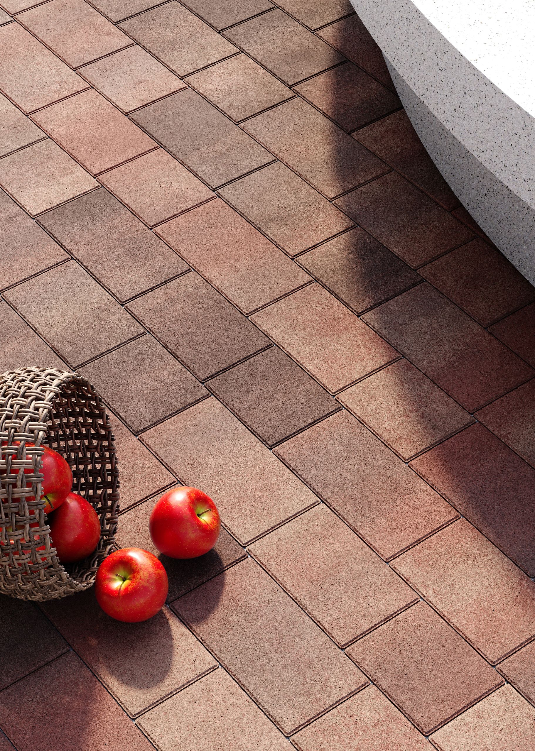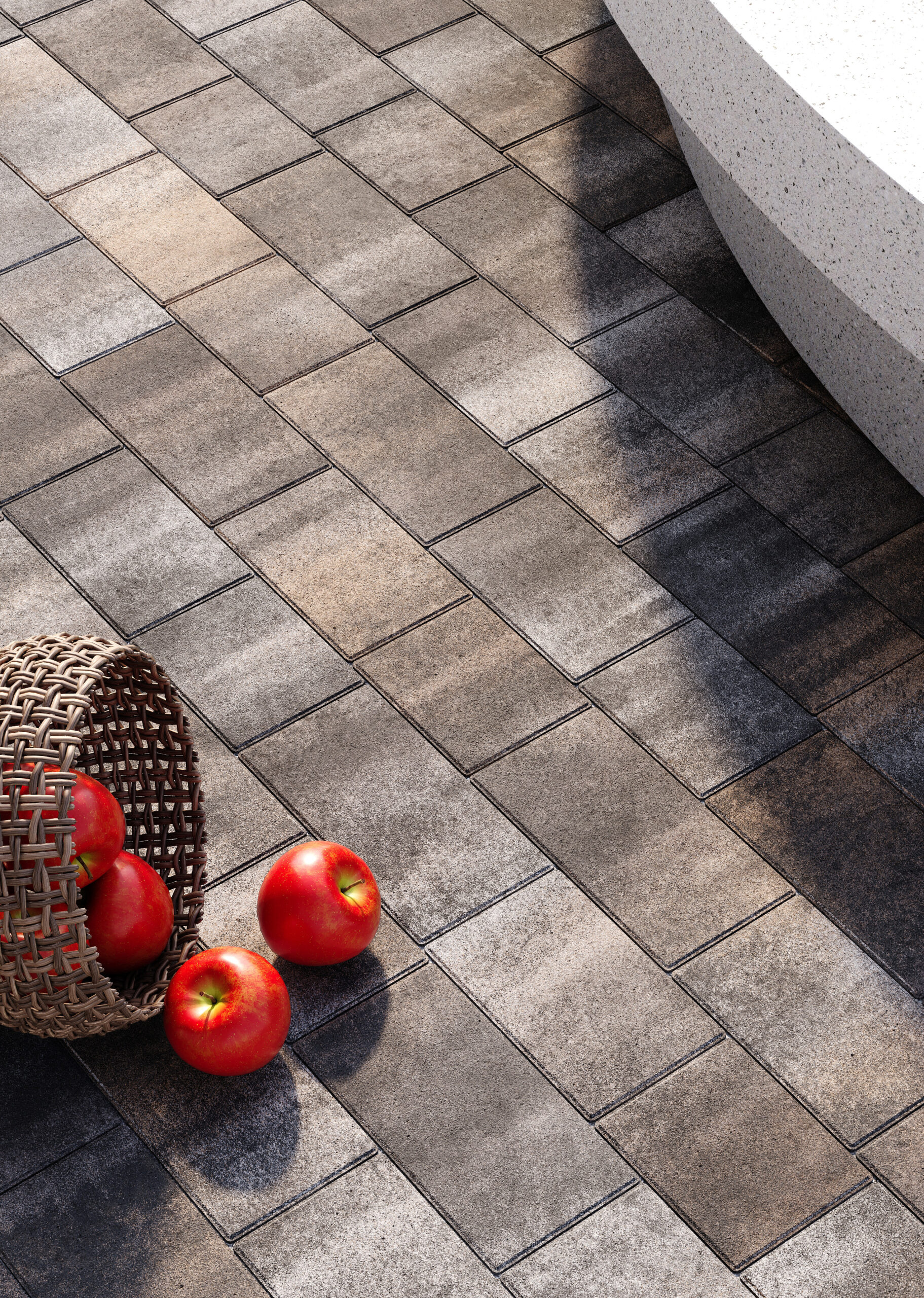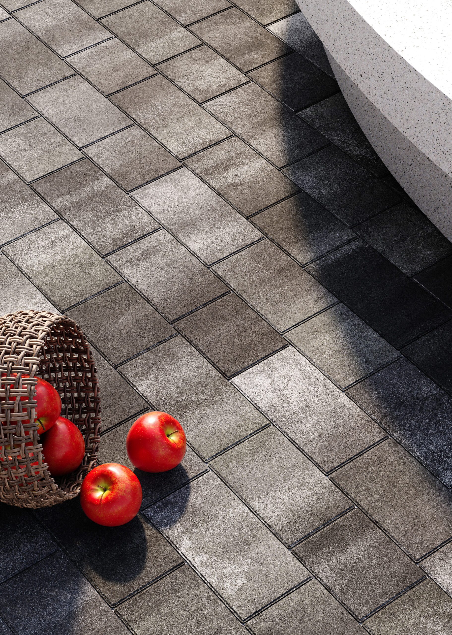 Різна довжина елементів дозволяє викладати динамічний, “живий” малюнок без повторів. Поверхня з мікрофаскою забезпечує ідеальне прилягання між плитками – така бруківка виглядає монолітно та візуально розширює простір.