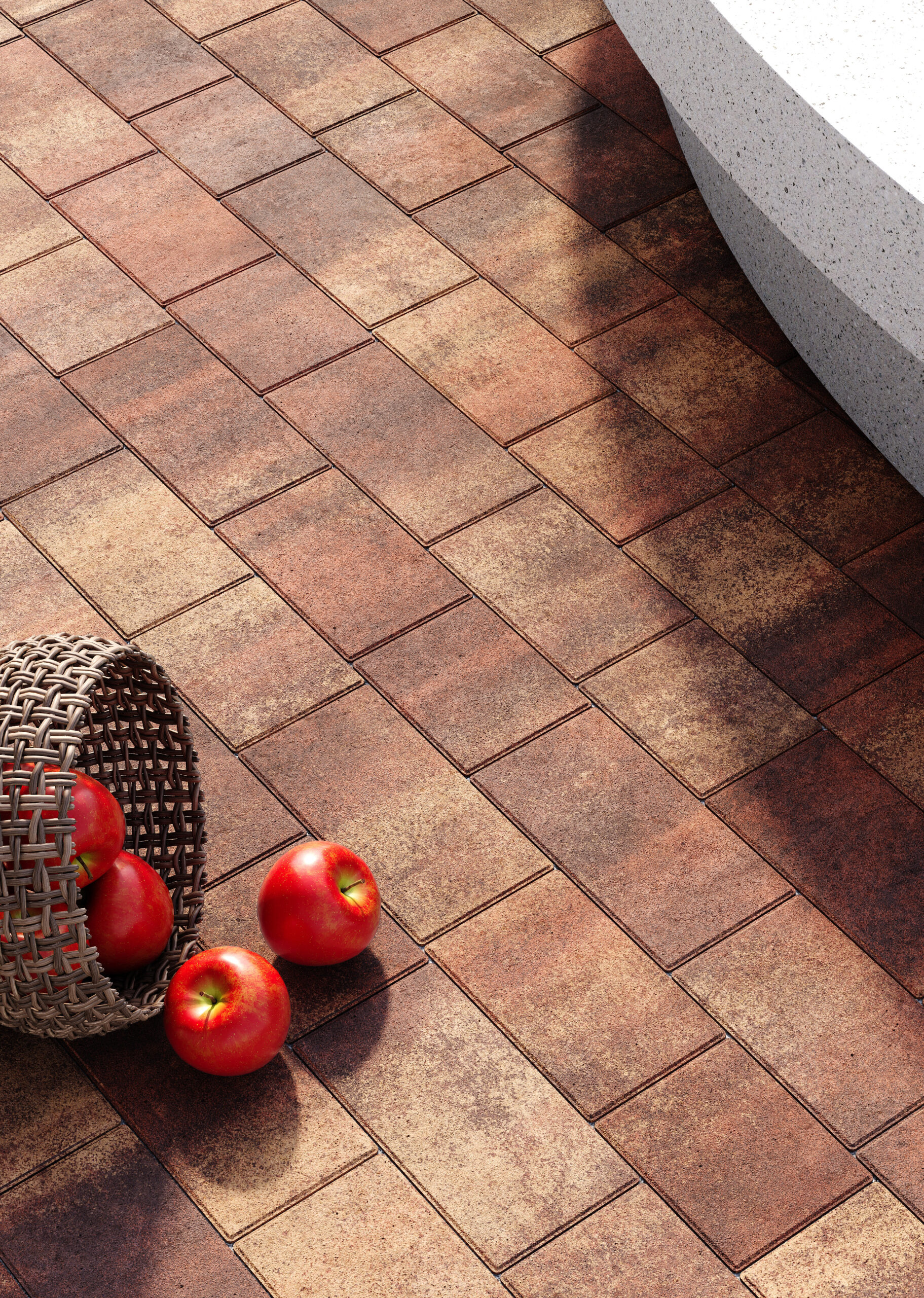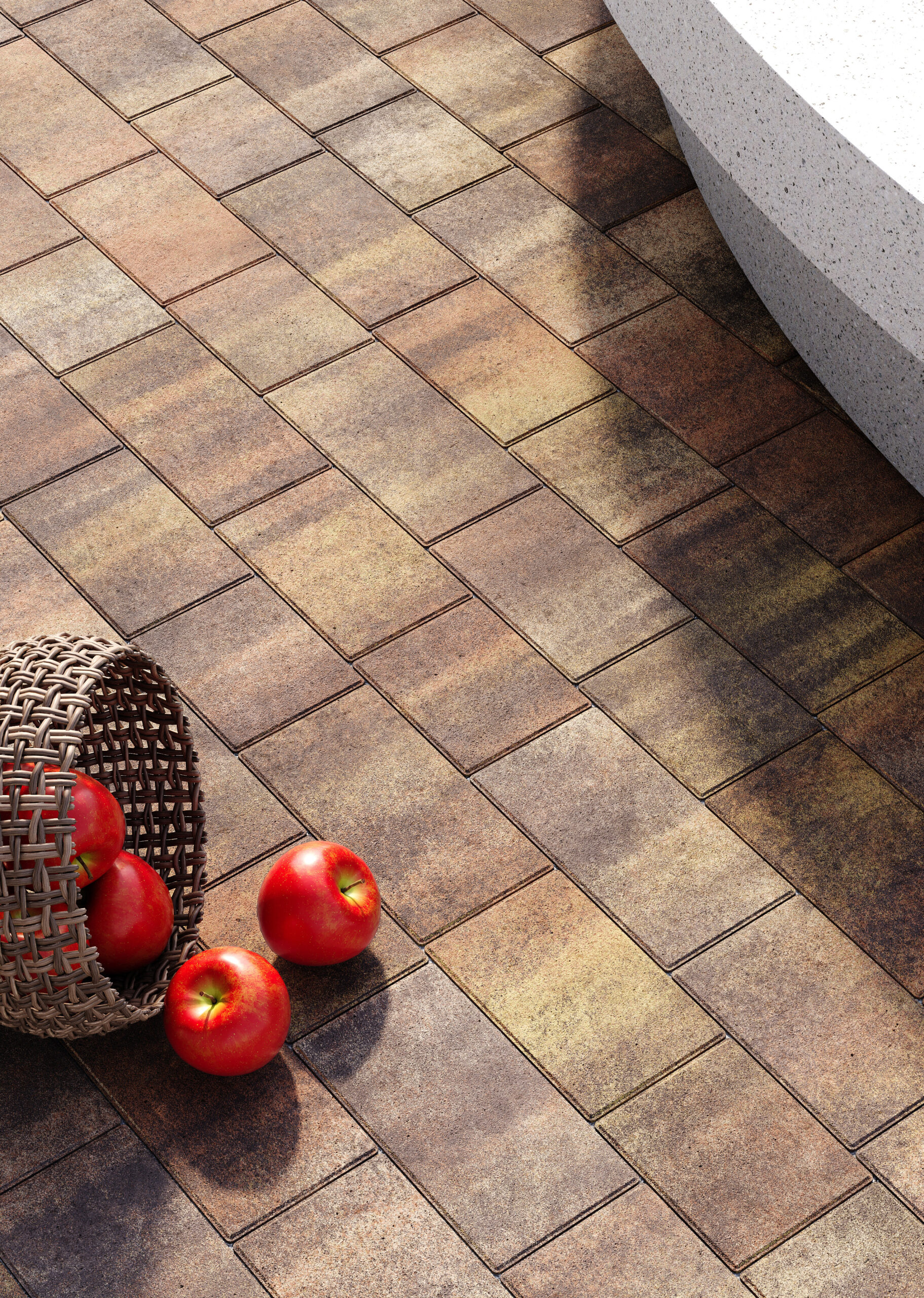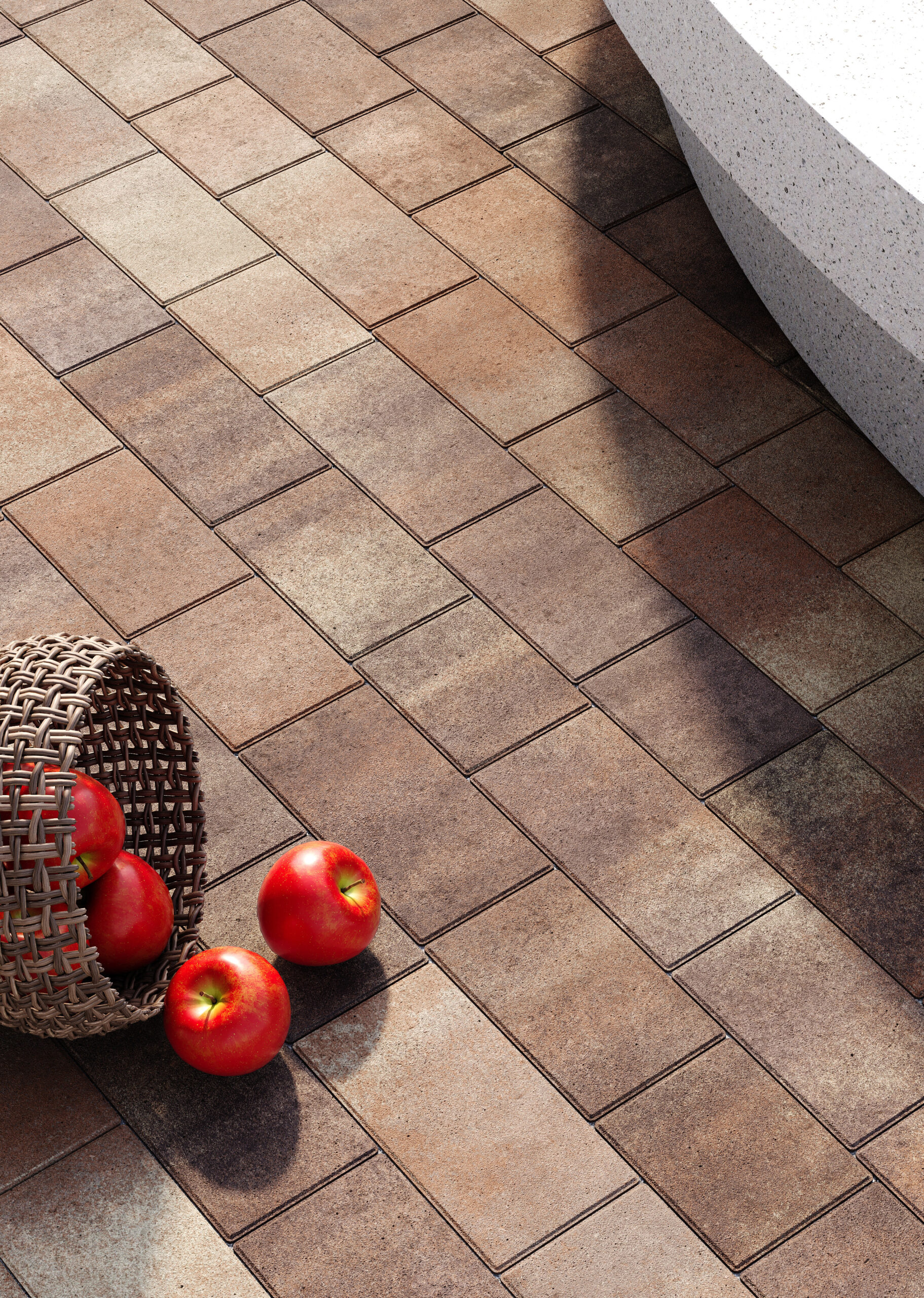 Різна довжина елементів дозволяє викладати динамічний, “живий” малюнок без повторів. Поверхня з мікрофаскою забезпечує ідеальне прилягання між плитками – така бруківка виглядає монолітно та візуально розширює простір.