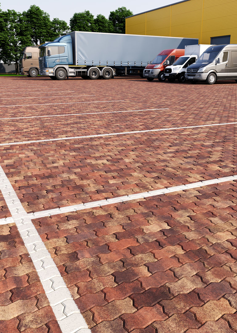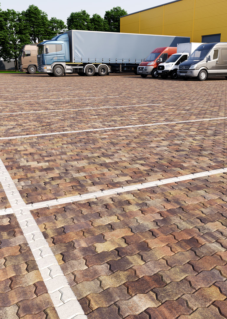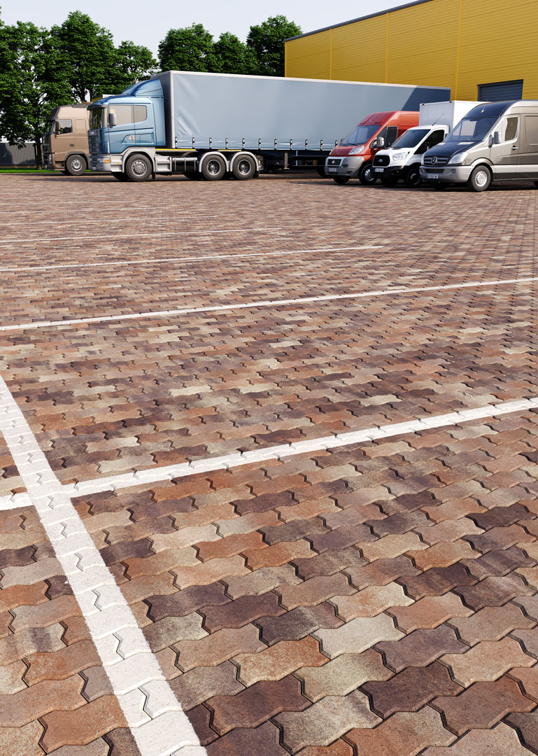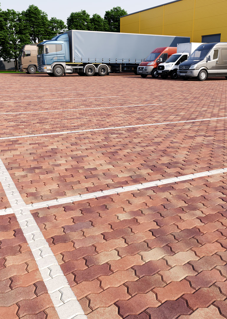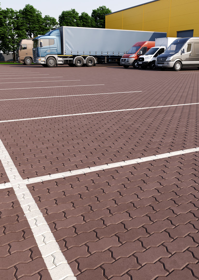 Бруківка висотою 6 см витримує інтенсивний рух вантажного транспорту від 3,5 т, використовується для паркомісць, підʼїзних доріг та доріг загального призначення.