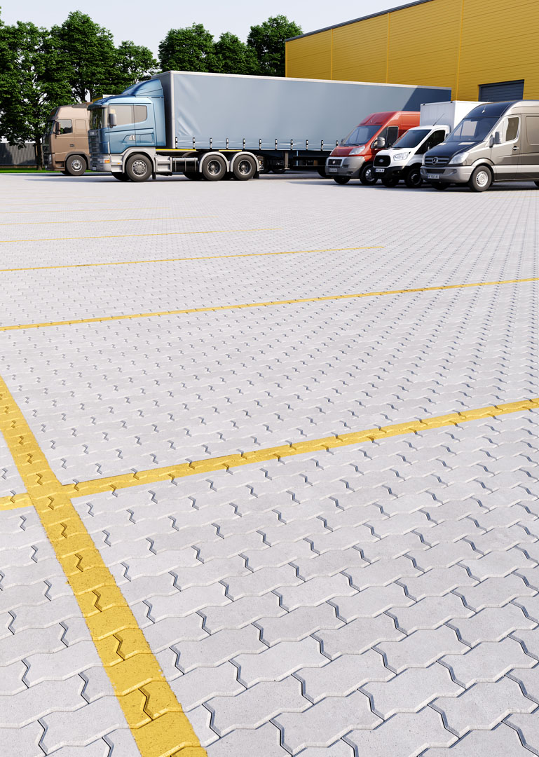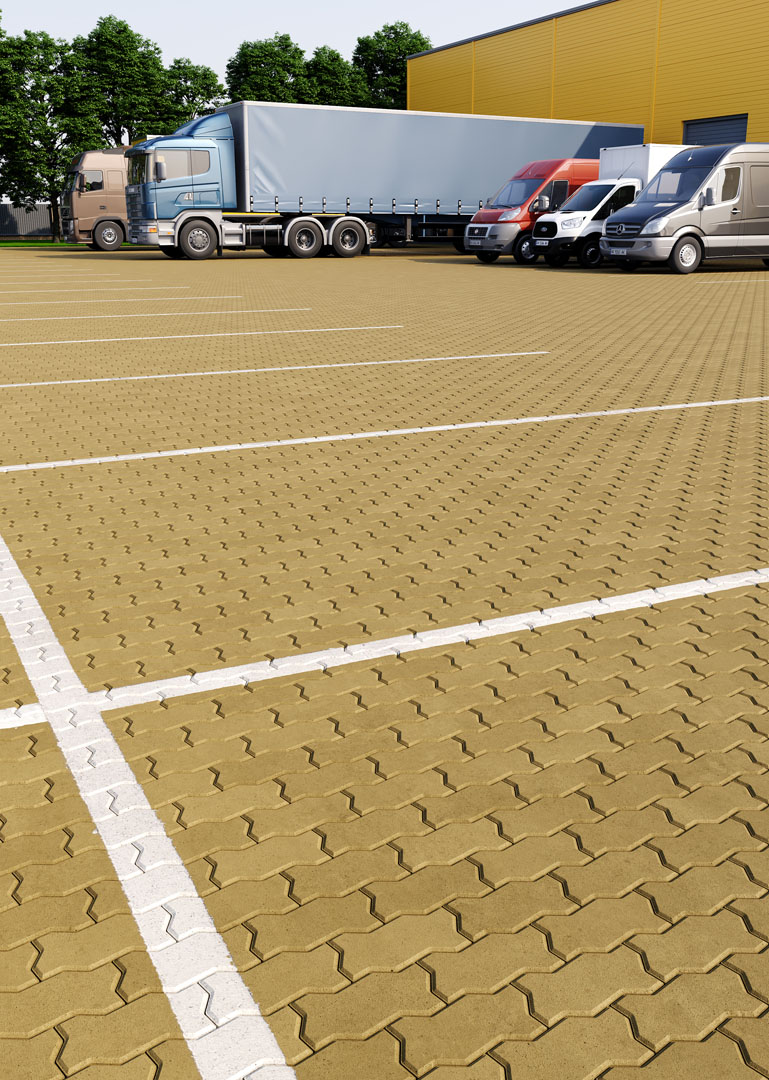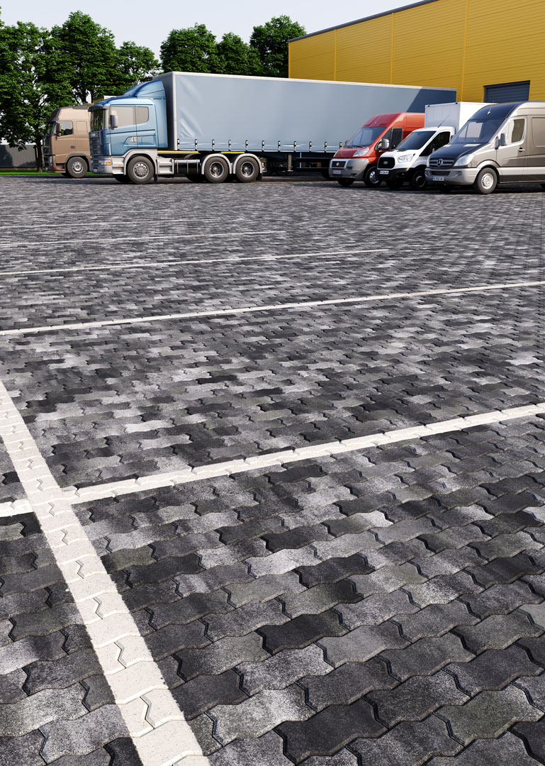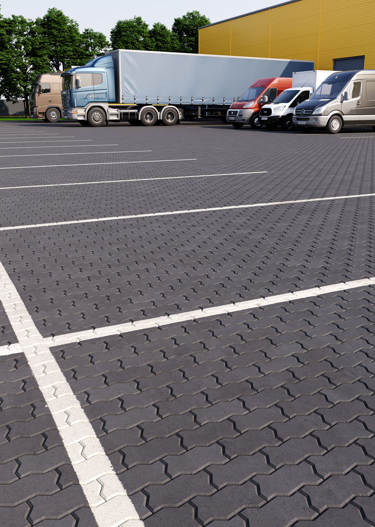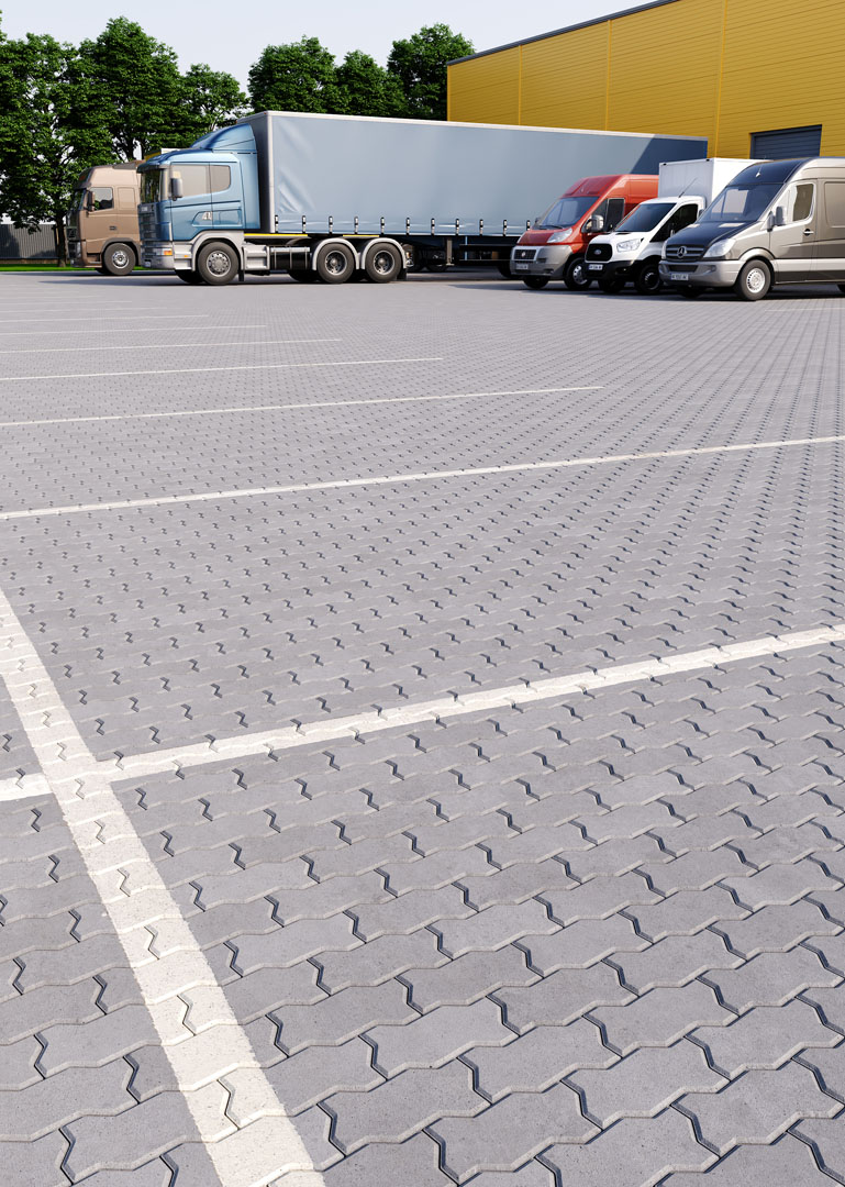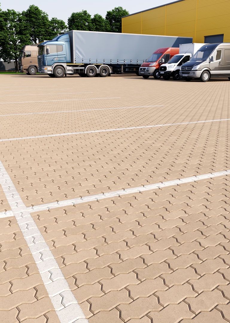 Бруківка висотою 6 см витримує інтенсивний рух вантажного транспорту від 3,5 т, використовується для паркомісць, підʼїзних доріг та доріг загального призначення.