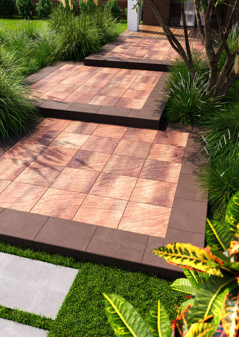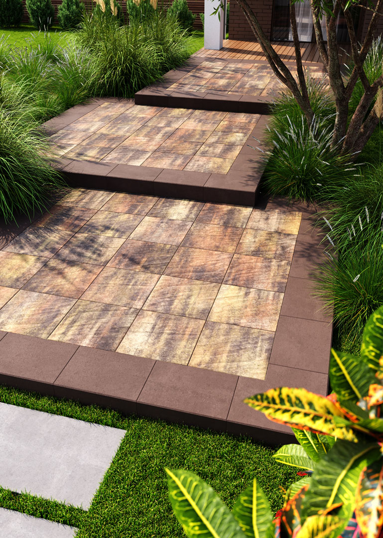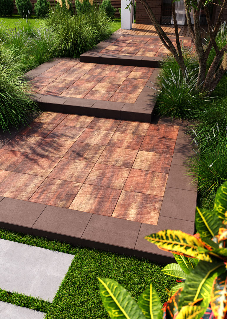 5 см – бруківка, яка витримує не інтенсивний рух легкових автомобілів до 3,5 т. Терасна плитка квадратної форми може використовуватися для облицювання стін і підлог також і в середині приміщень.