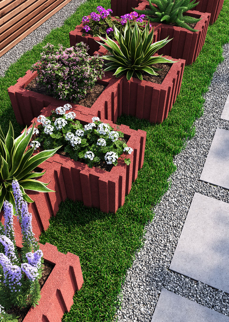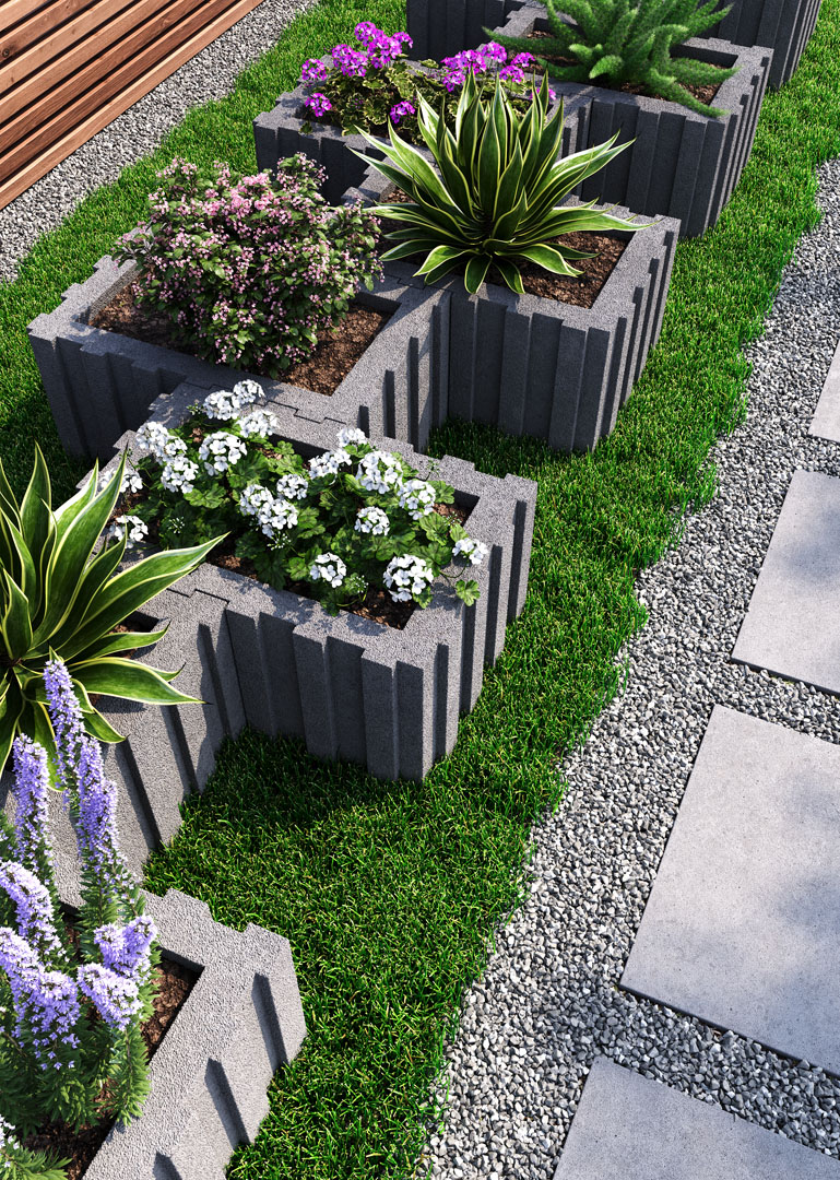 Прямокутні бетонні квітники чудово підходить для встановлення підпірних стінок на місцевості з різним рельєфом, будівництва автономних стін і огорож, звукових та візуальних бар’єрів.
