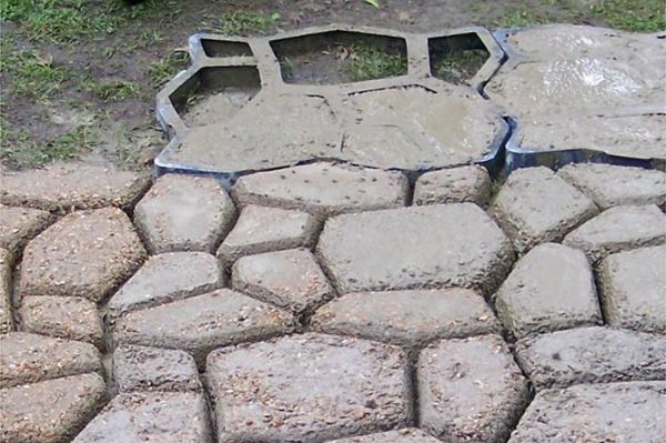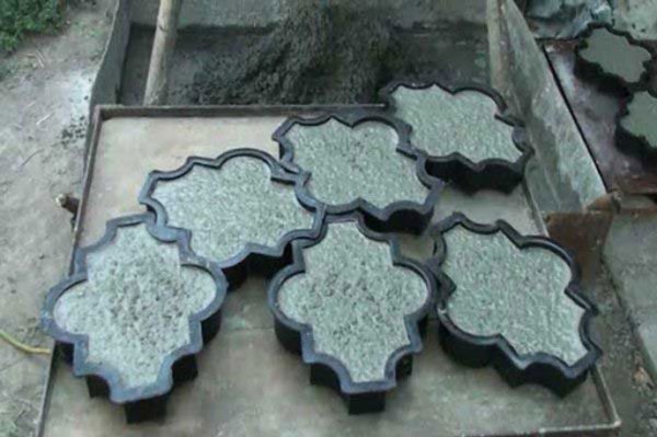 Перш за все готується суміш для бруківки. Вона готується за допомогою бетонозмішувача. Складники прості: це цемент, вода, наповнювач (пісок, відсів щебеню, шлаку, гранітна крошка та ін.) і пластифікатор (за бажанням). Спочатку суміш необхідно ретельно змішати без додавання води. А ось води потрібно додати таку кількість, аби сама суміш була на вигляд вологою і не була схожа на звичайний бетонний розчин.