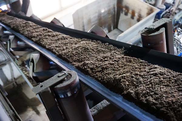 Готова суміш на транспортерній стрічці подається в обладнання з автоматичним процесом додавання у форми основної суміші, вібрації, та додавання суміші для верхнього шару. Після цього вмикається кінцева стадія вібрації. Далі, при укладці на піддон кожен шар готової плитки пересипається дрібною крихтою щебеню для запобігання склеювання.