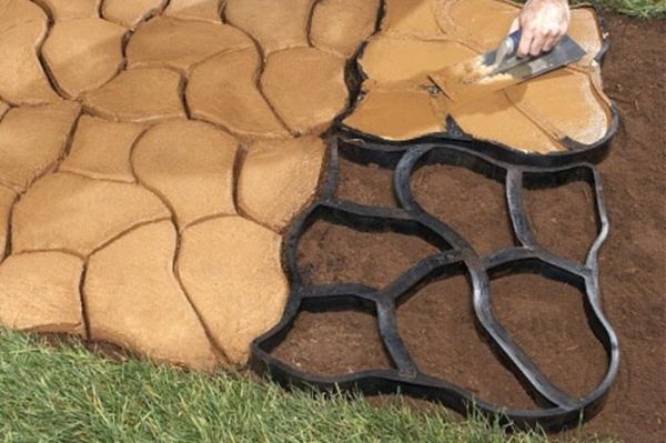 Іноді бетонну суміш заливають безпосередньо на доріжки, використовуючи форми прямо на місці. В такому випадку вкрай важливо забезпечити ретельну вібрацію в кожній ділянці.